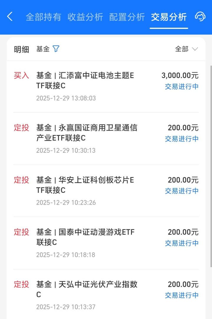 新能源还是非常受到政策重视的,不管是光伏还是电池,我都觉得26年有希望接力一部分科技引导创业板向上,所以我一直在保持定投,不断的抬升仓位,手里还有子弹,我会慢慢打,今天定投继续。